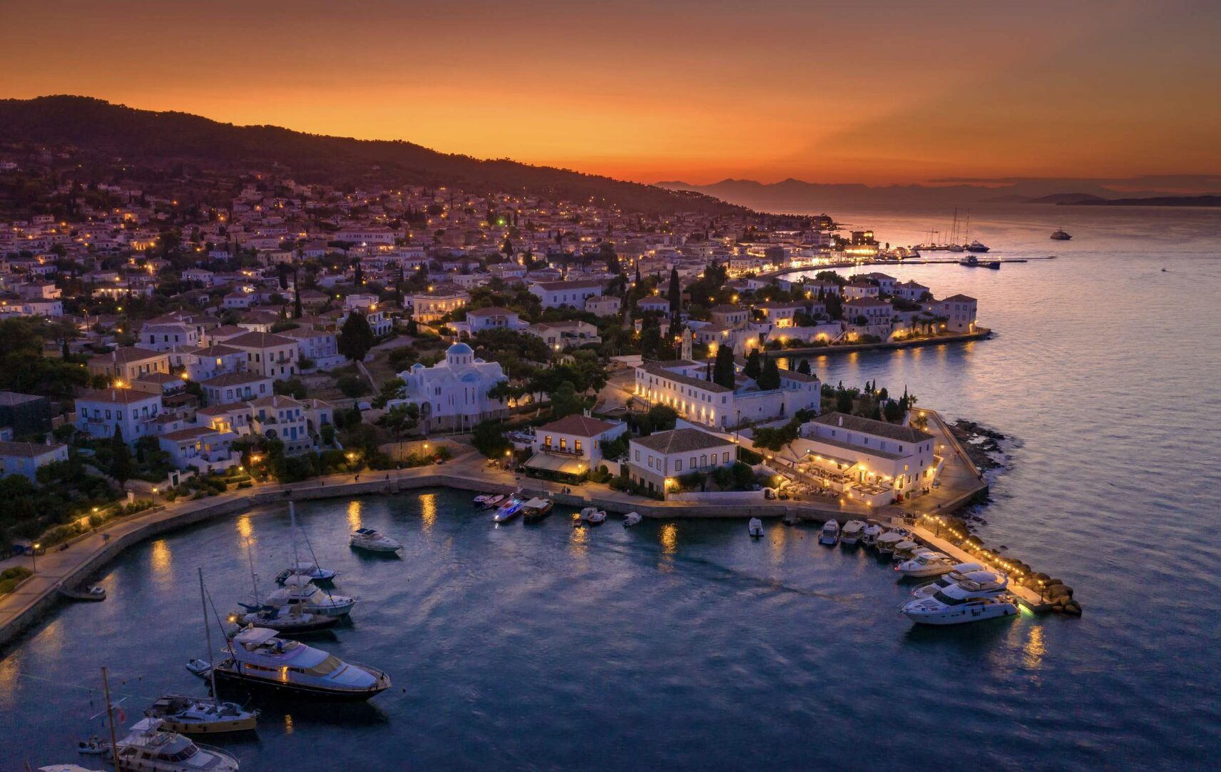 Pretty Poros is a must-see delight in the Sardonic Gulf. With its delectable seafood offerings, fragrant lemon and pine forests, and ancient temple for Poseidon, you get the perfect fill of culture, food, and scenery to feed all your Greek dreams. The picturesque Poros town is a must-see, with its neoclassical buildings perched on the Poros Strait. Charter guests should be sure to see the iconic clock tower for incredible harbor views, along with the Folk Museum for a fascinating glance into the domestic past of Greece. Churches, monasteries, and temples are all ripe for picking when it comes to how to spend your afternoons.