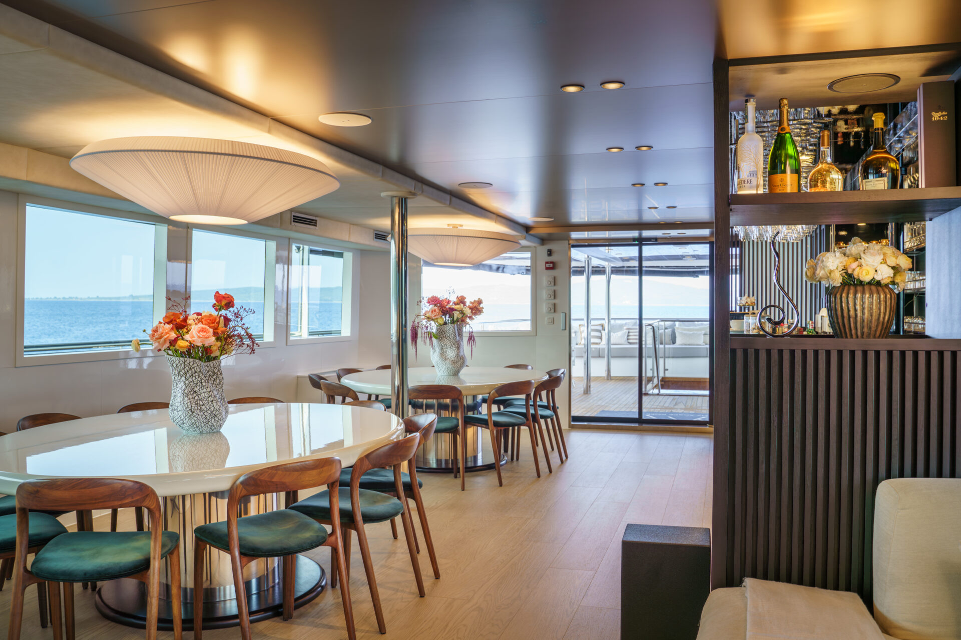 • Large dining tables for 22 both indoors and on deck