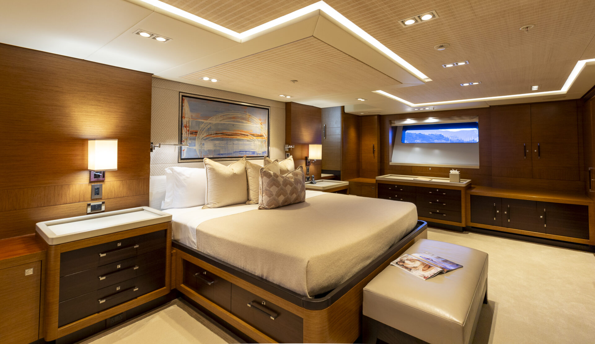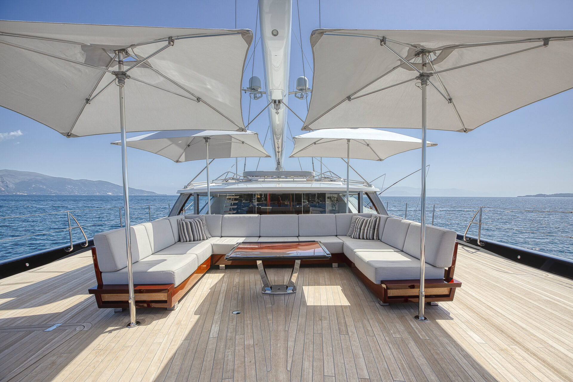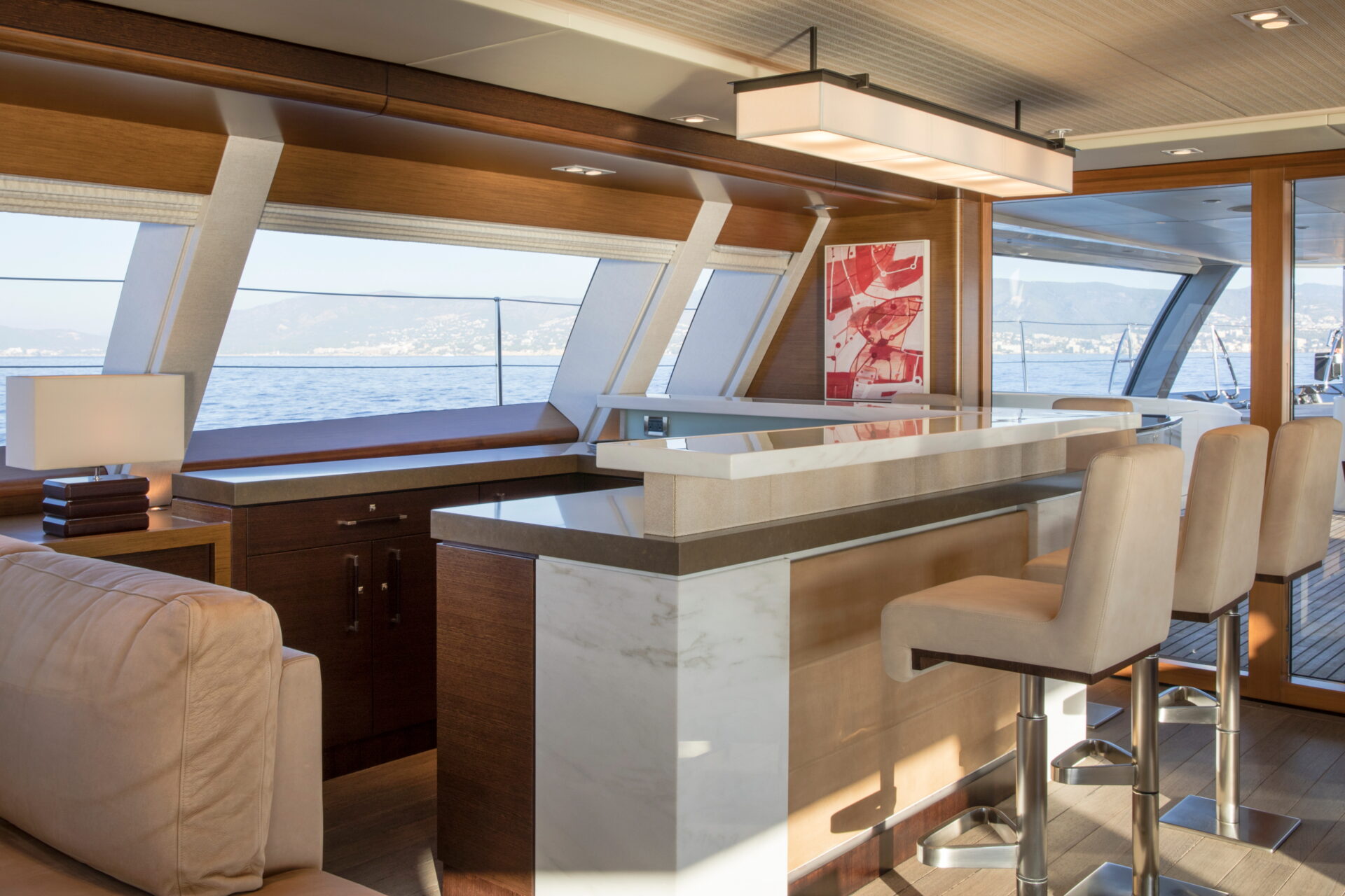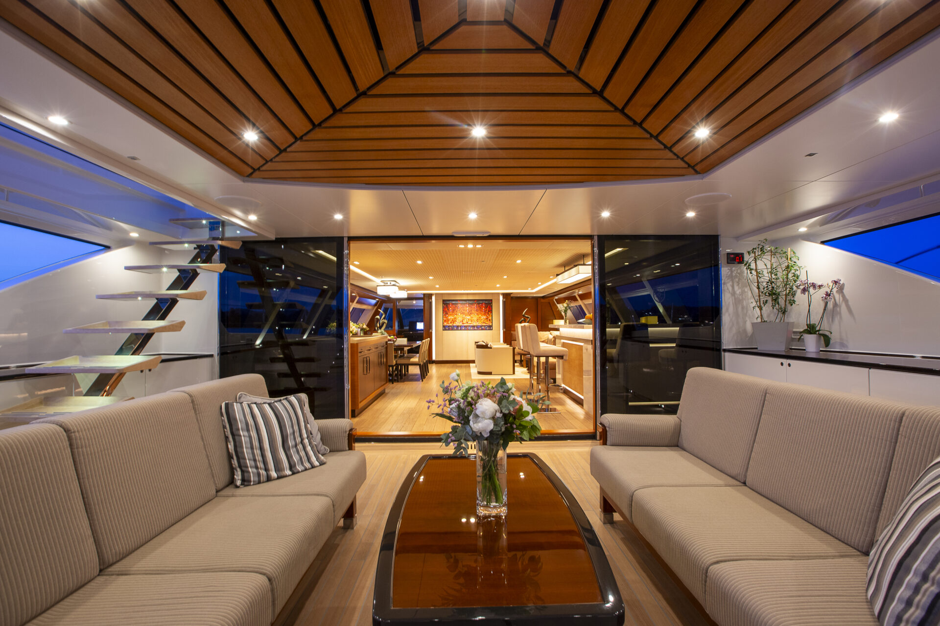 • Sleek profile and modern interiors crafted by the esteemed British yacht design firm, Redman Whiteley Dixon