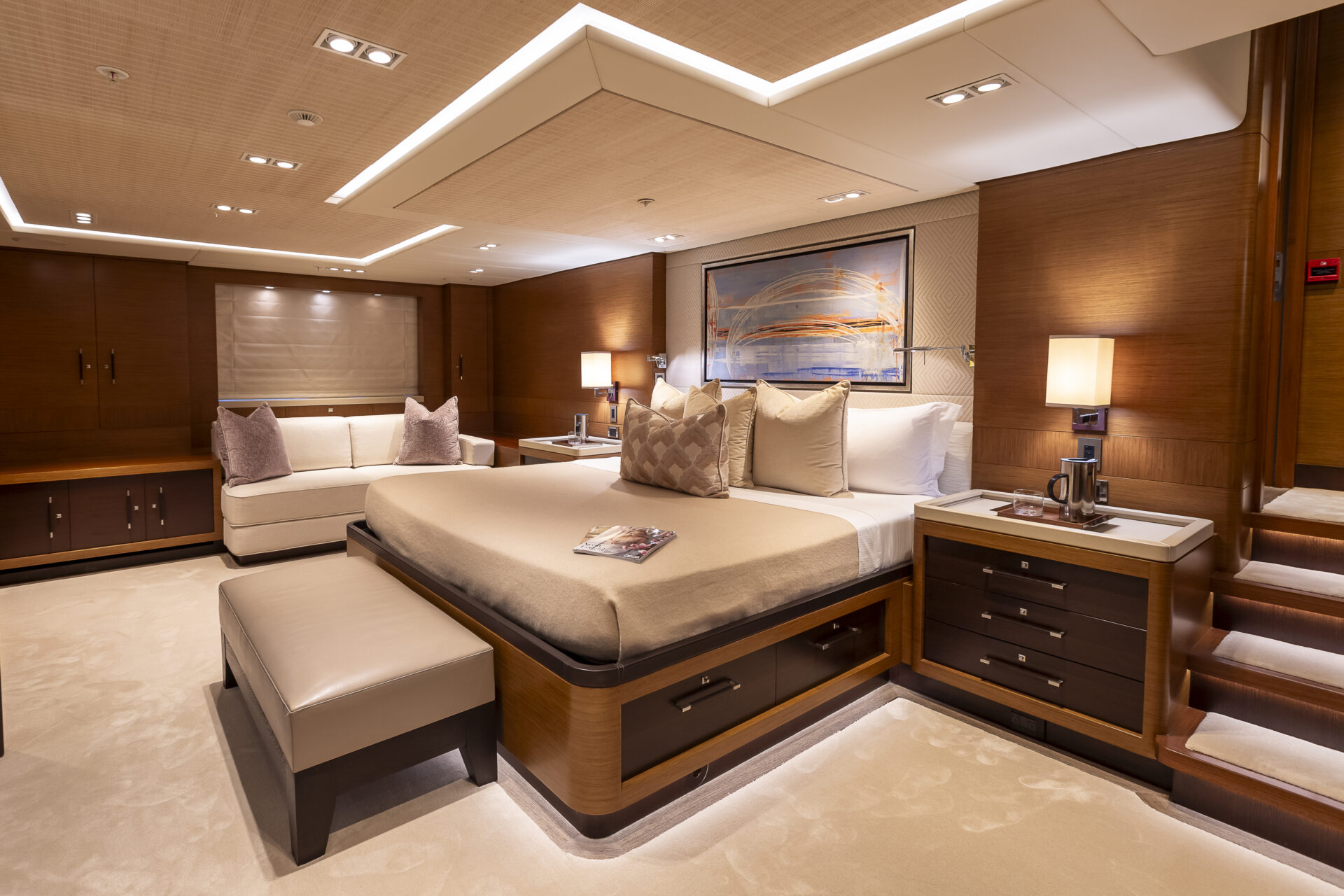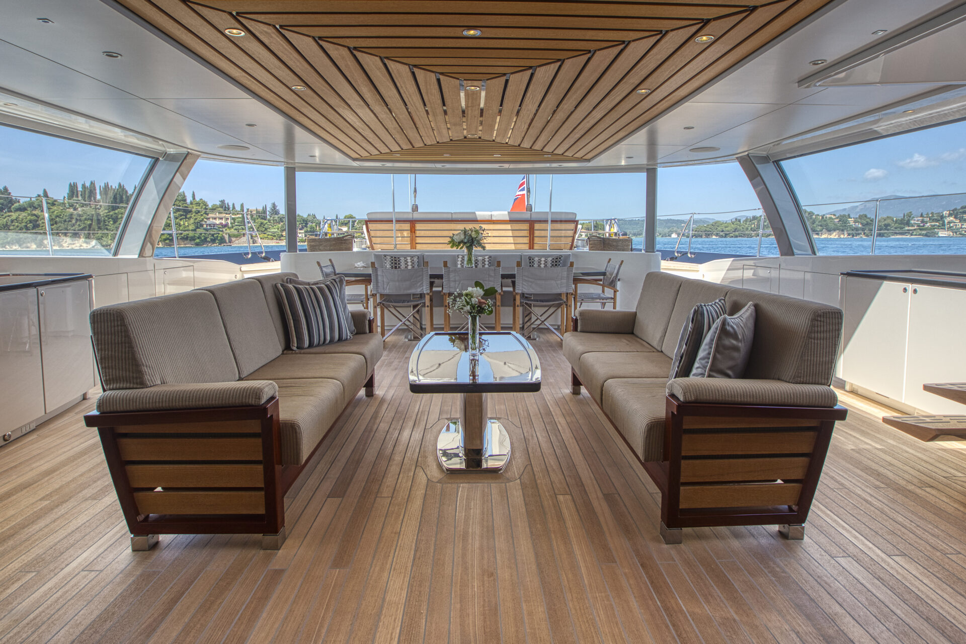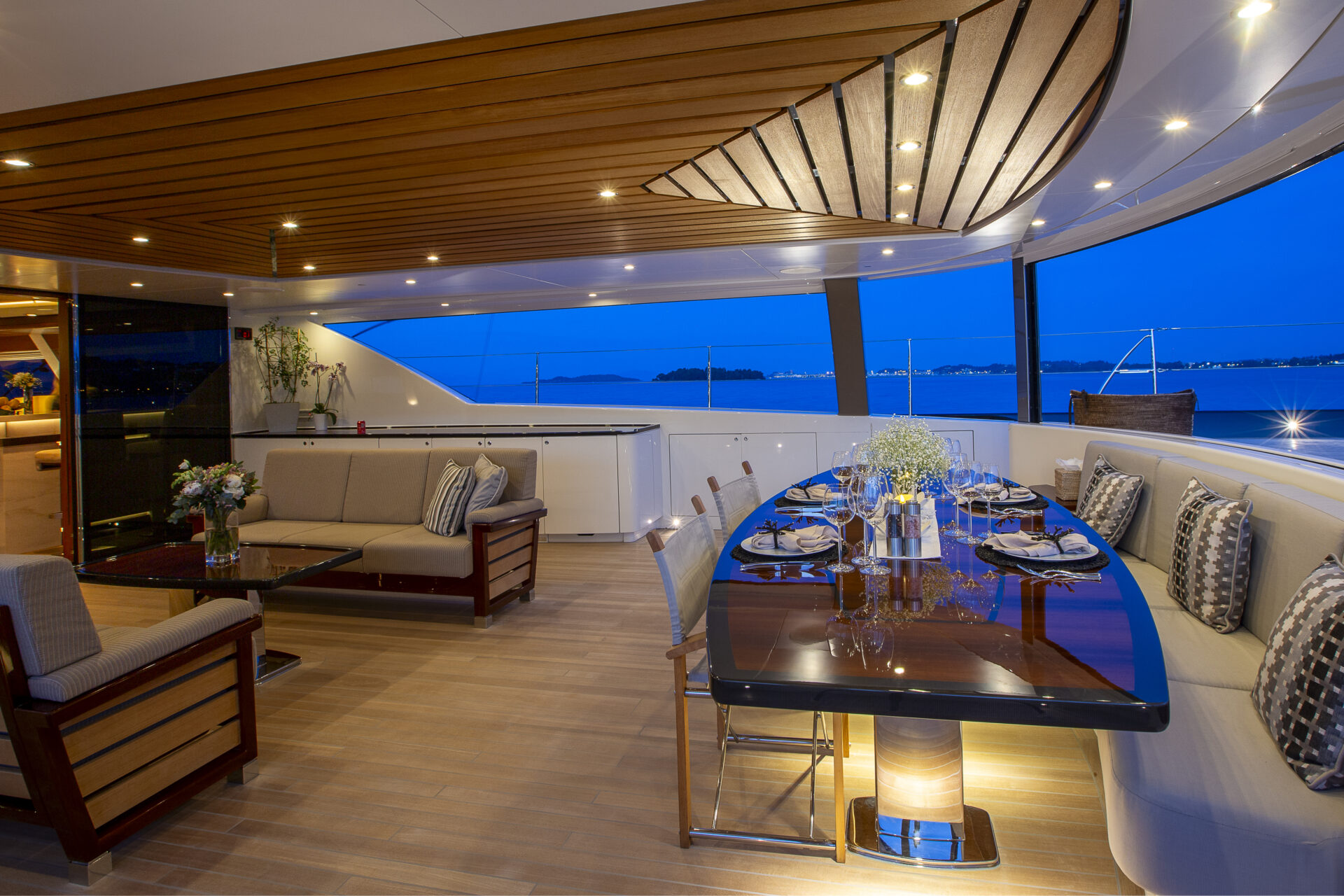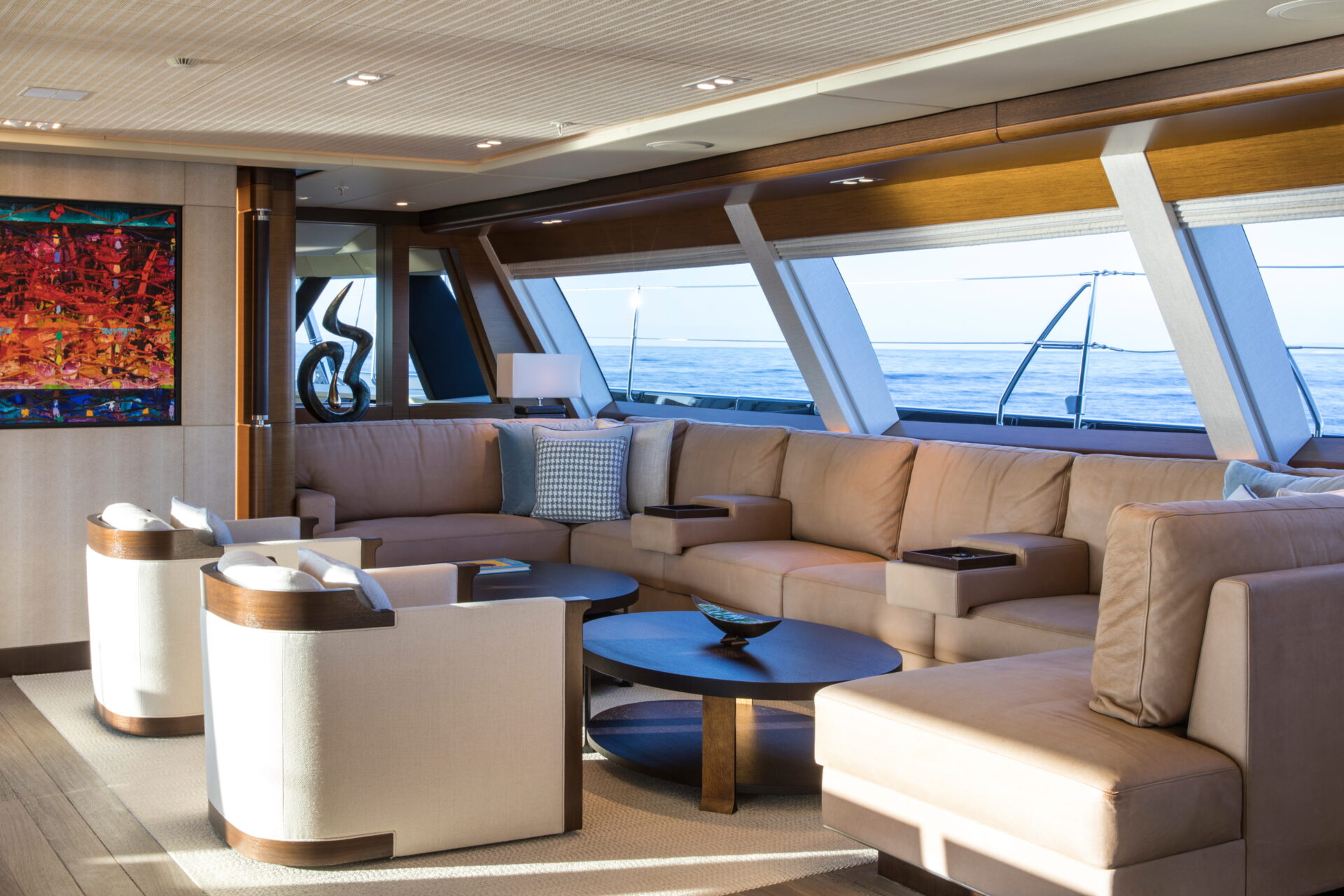 • Sleek profile and modern interiors crafted by the esteemed British yacht design firm, Redman Whiteley Dixon