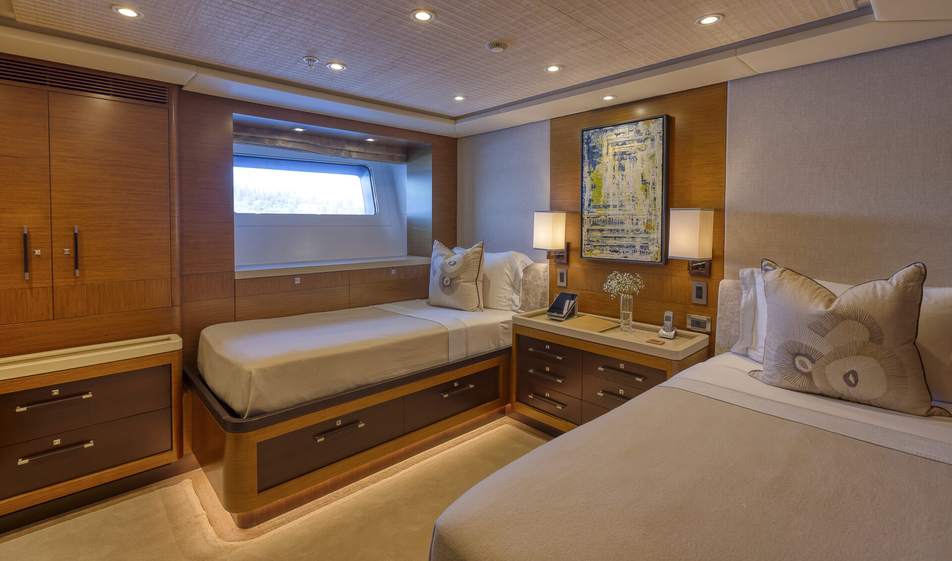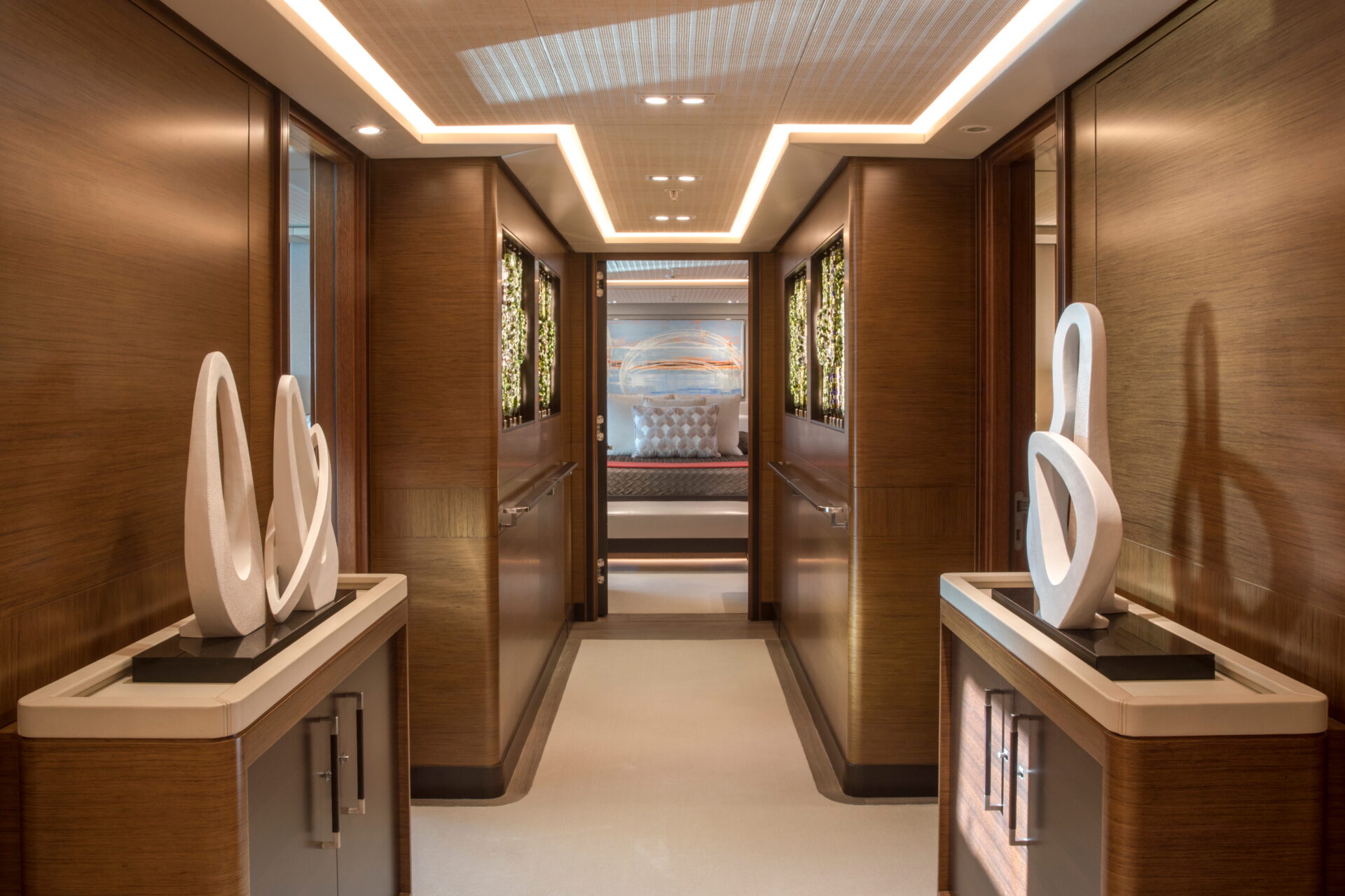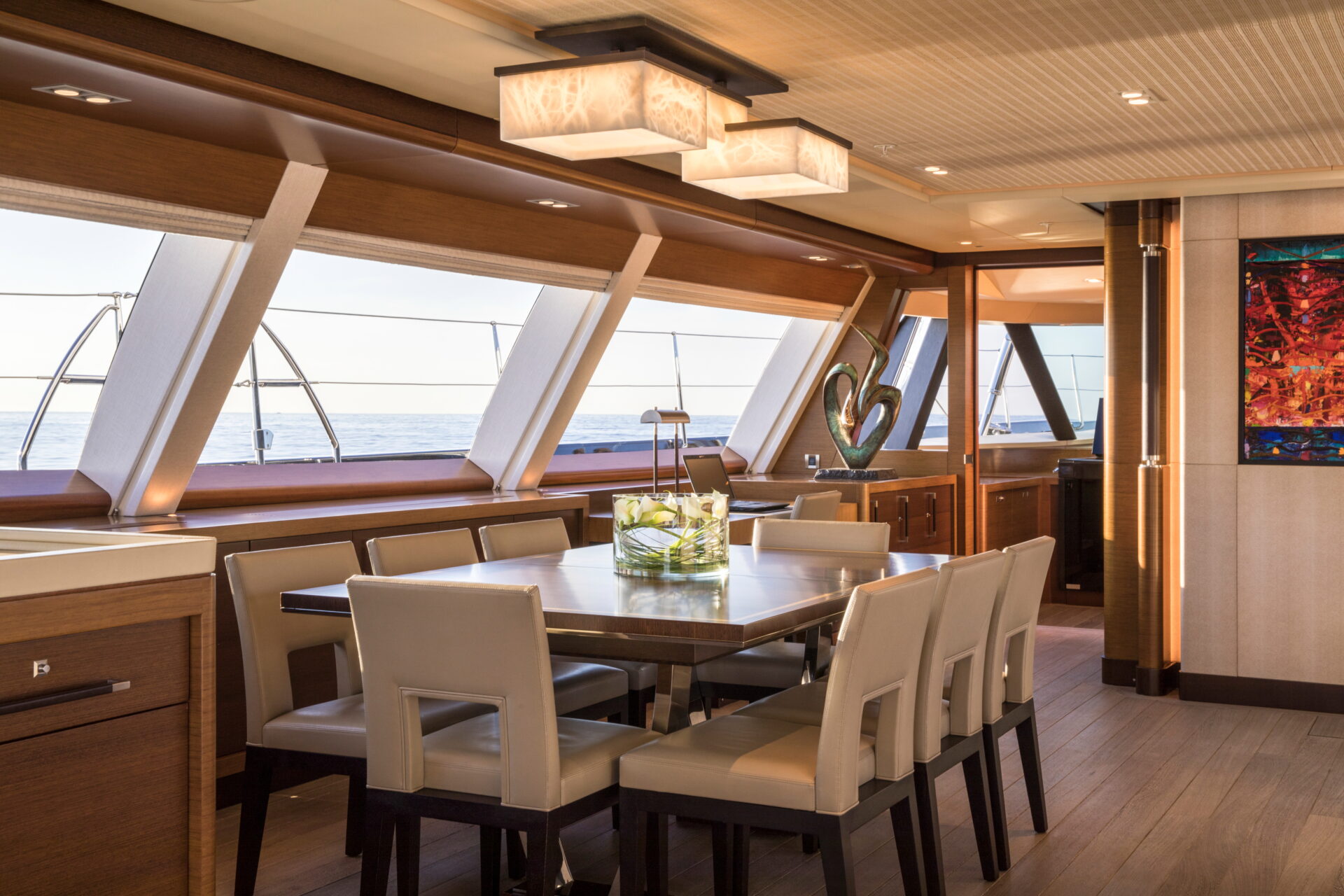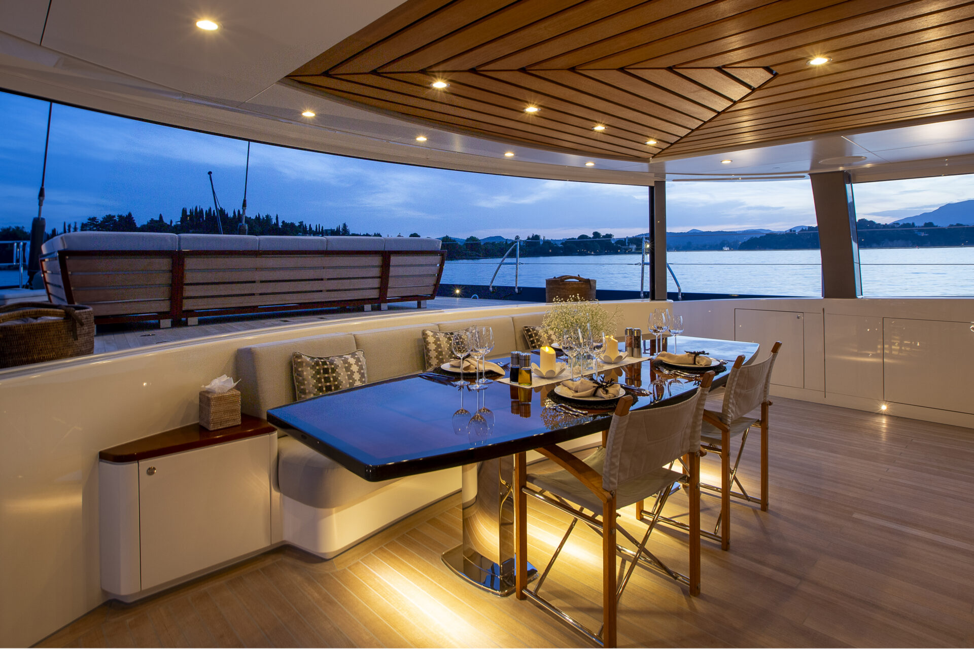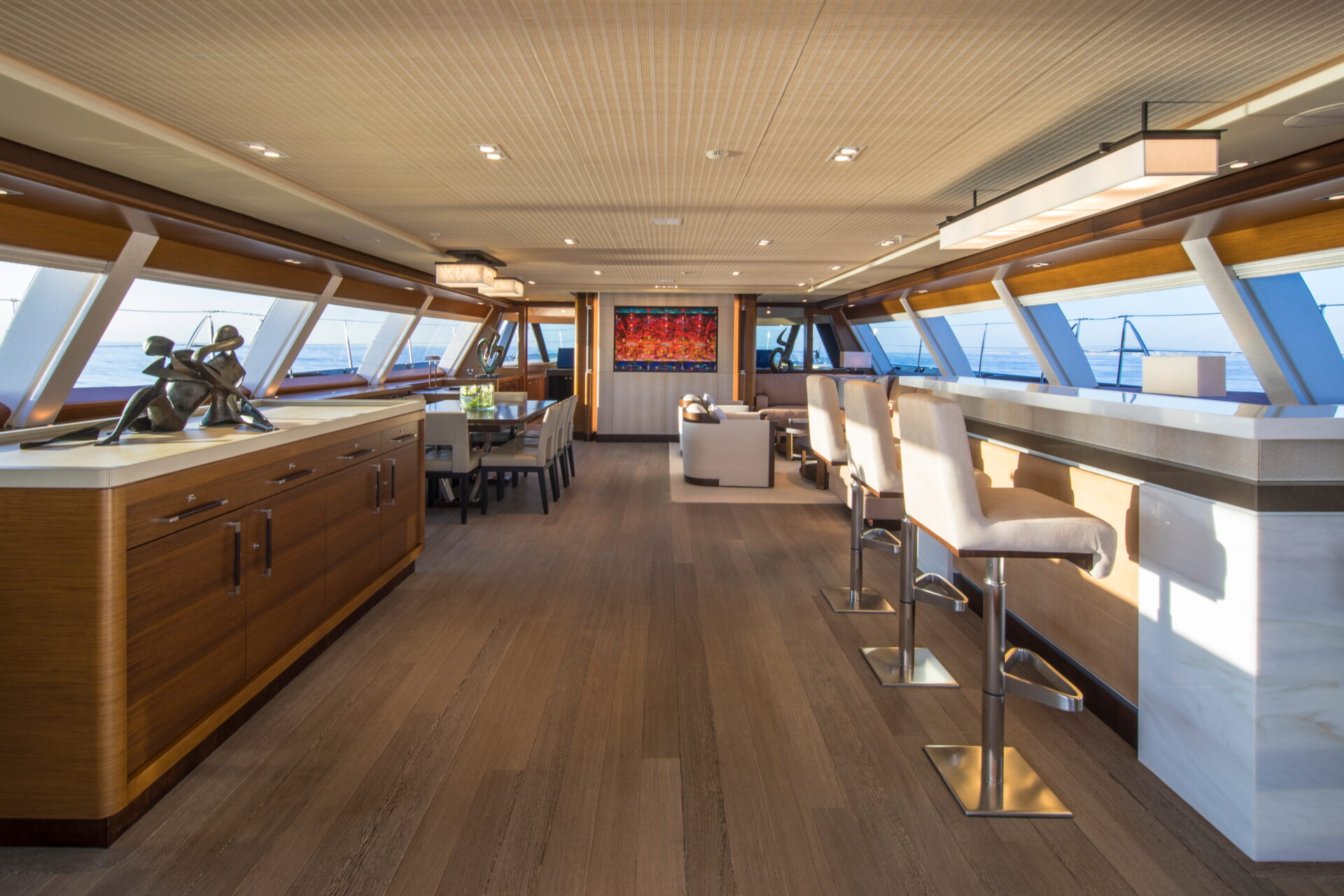 • Sleek profile and modern interiors crafted by the esteemed British yacht design firm, Redman Whiteley Dixon