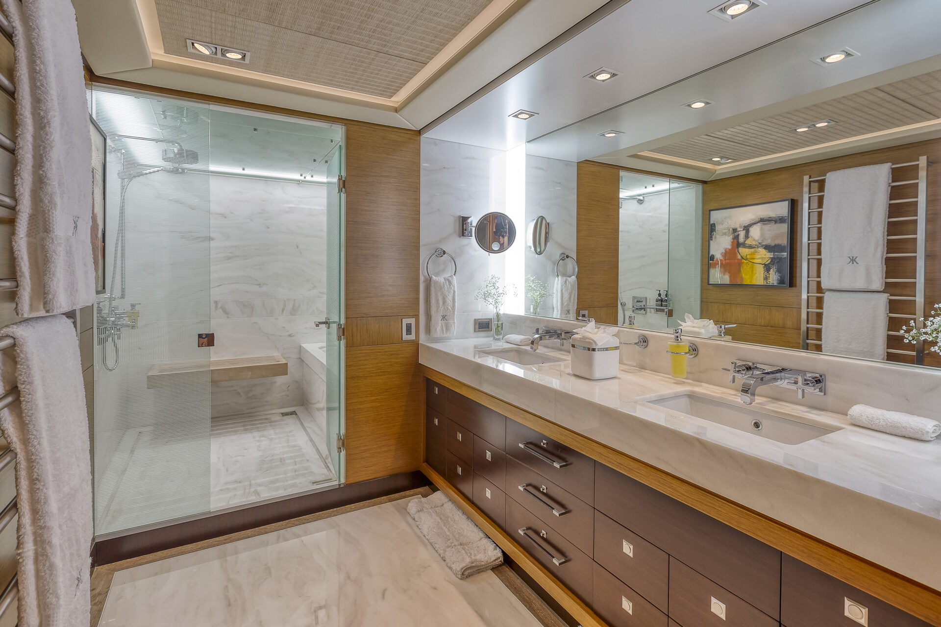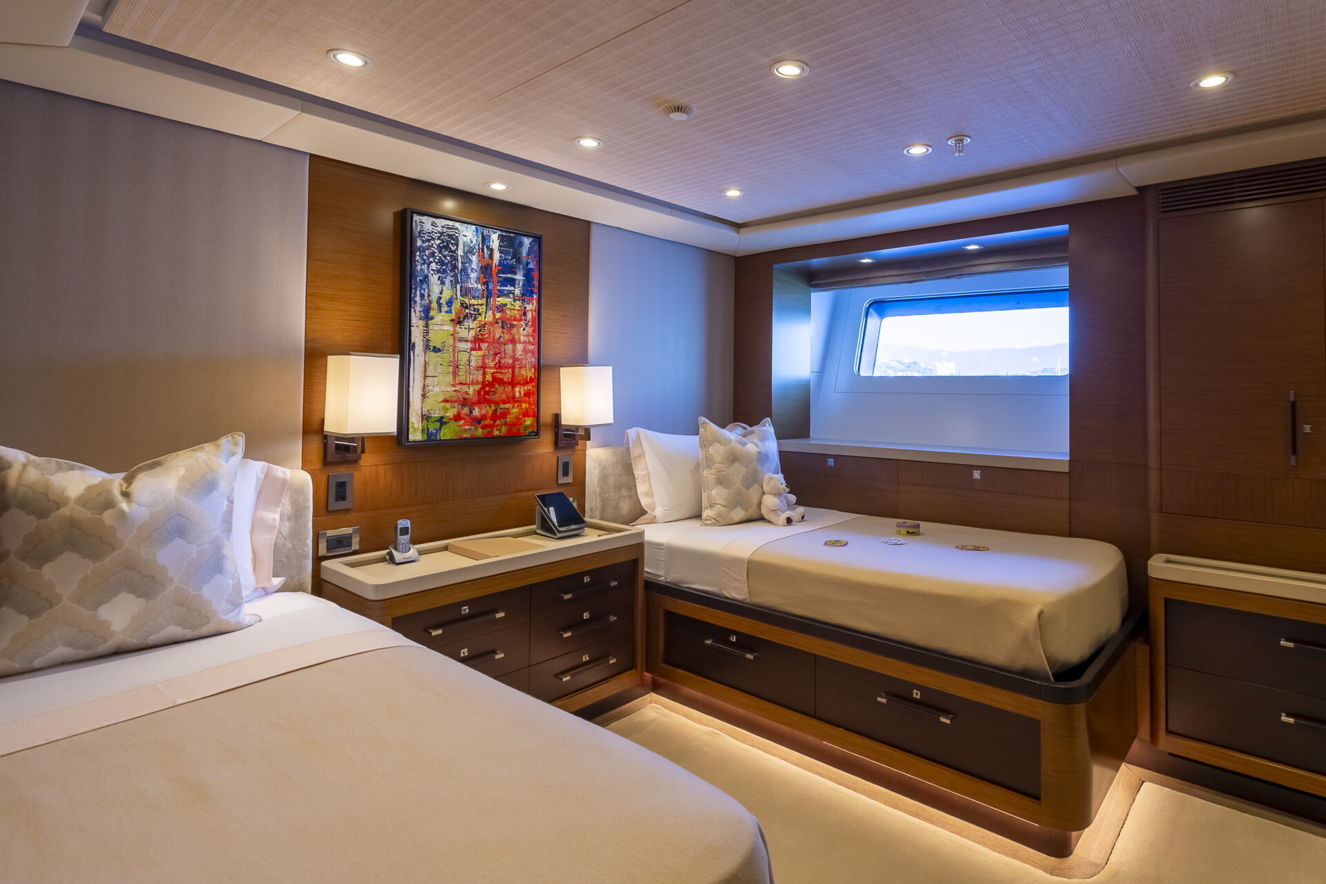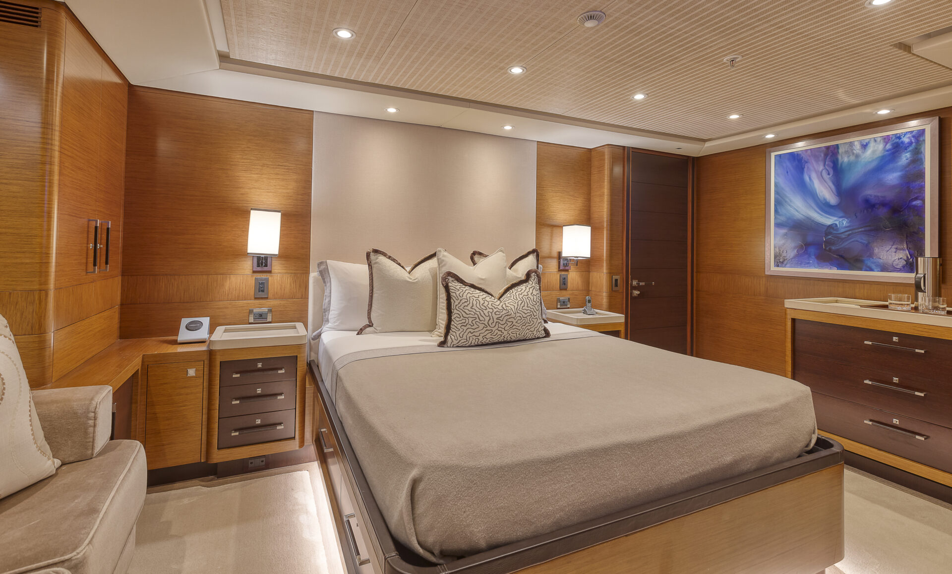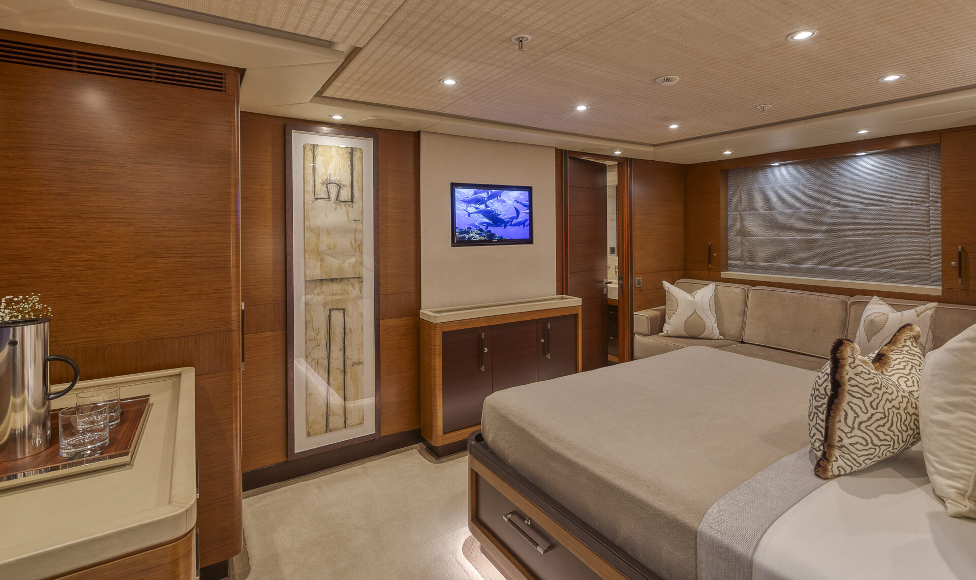 • Sleek profile and modern interiors crafted by the esteemed British yacht design firm, Redman Whiteley Dixon