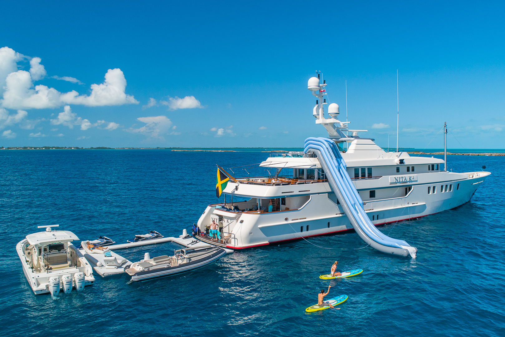 • Extensive toys list including a slide, jetskis, waterskis, seabobs, wakeboards, kayaks, sea pool with jellyfish net, fishing equipment and much more