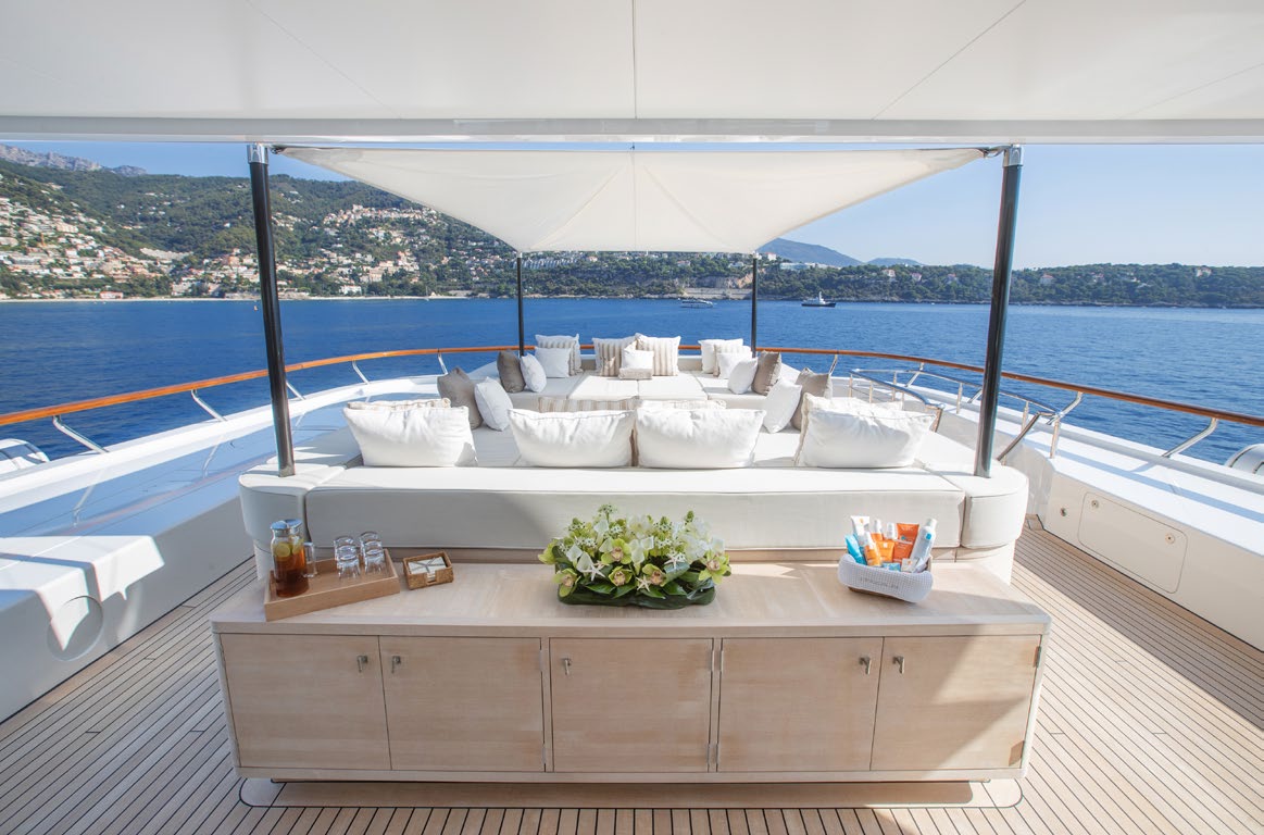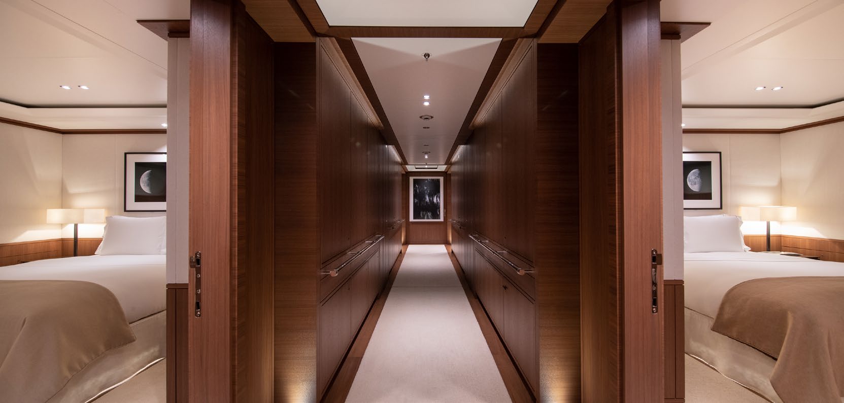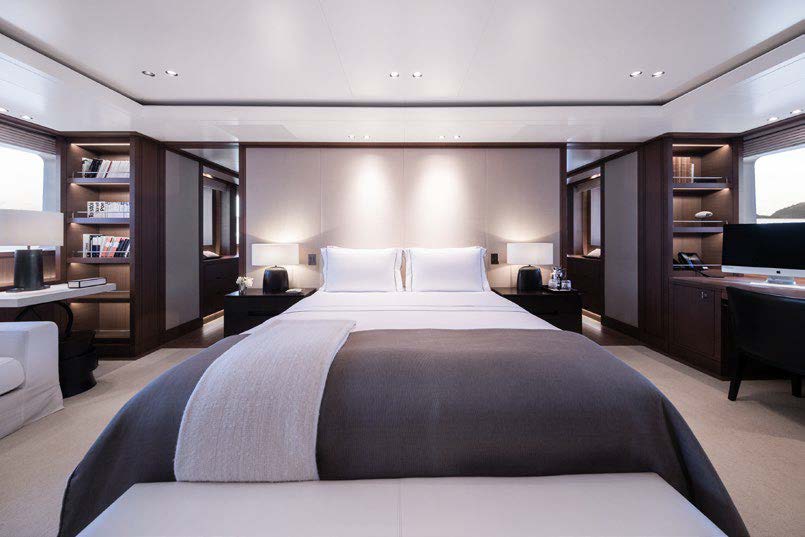 • Extended swim platform and sauna located in the aft peak for a full wellness experience