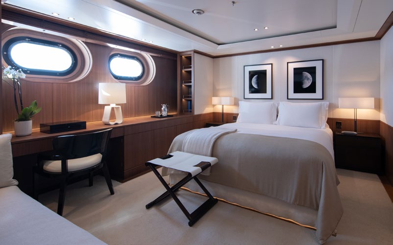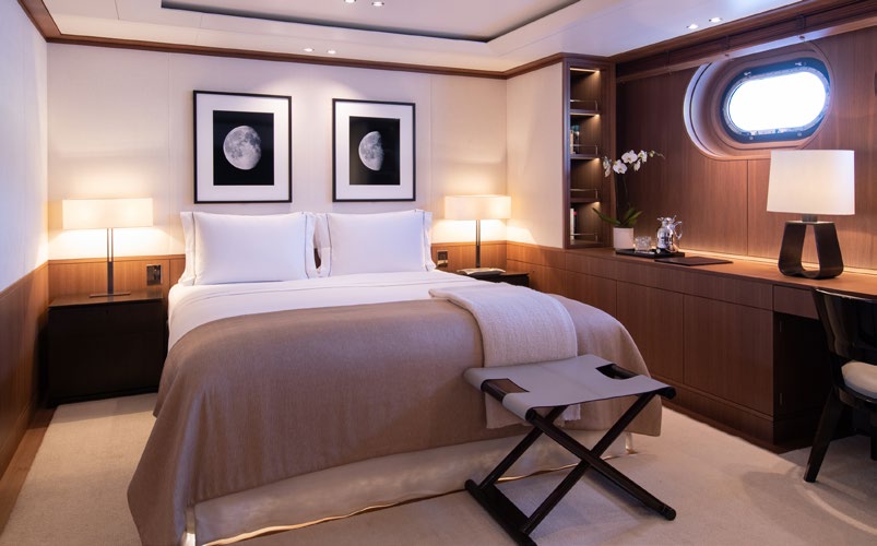 • Full-beam Master Suite on main deck plus 4 guest cabins and 1 convertible
