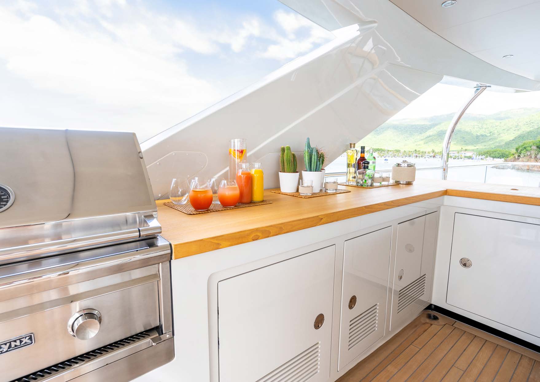 • Large lazarette equipped with toys, a nitrox compressor and a spacious walk-in fridge for extended exploration support